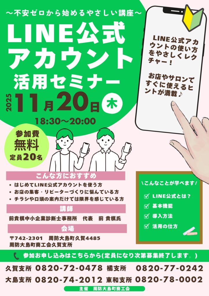 商工会からご依頼をいただき、大畠商工会では生成AI活用セミナーを、周防大島町商工会ではLINE公式アカウント活用セミナーを開催しました。